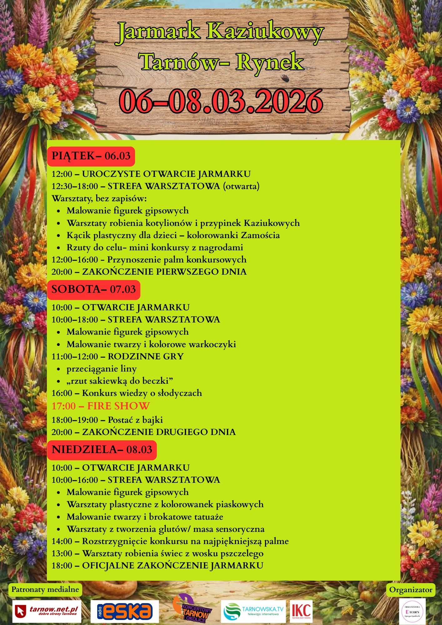 W najbliższy weekend, w dniach 6–8 marca 2026 roku, tarnowski Rynek zamieni się w tętniące życiem centrum folkloru, tradycji i rodzinnej zabawy. Po zeszłorocznym udanym debiucie Jarmark Kaziukowy powraca do Tarnowa Jarmark Kaziukowy 2026. Organizatorzy zapowiadają prawdziwe święto dawnych Kaziuków w nowoczesnym, atrakcyjnym wydaniu.