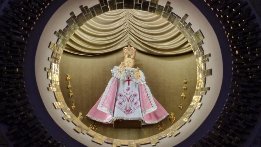 W latach 1997-2008 w Jodłowej trwała budowa nowego sanktuarium. Po zakończeniu prac tam właśnie, do głównego ołtarza przeniesiono figurkę, która jest codziennie zasłaniana i odsłaniana. A dodatkowo, przy okazji rozmaitych świąt liturgicznych, przystrajana w różne sukienki. Rzeźba Dzieciątka mierzy niecałe 45 i pół centymetra wysokości. Jest wykonana z drzewa oliwnego, choć niektórzy twierdzą, że za jej budulec posłużył gips i wosk. Jest umieszczona na półmetrowej podstawie.
