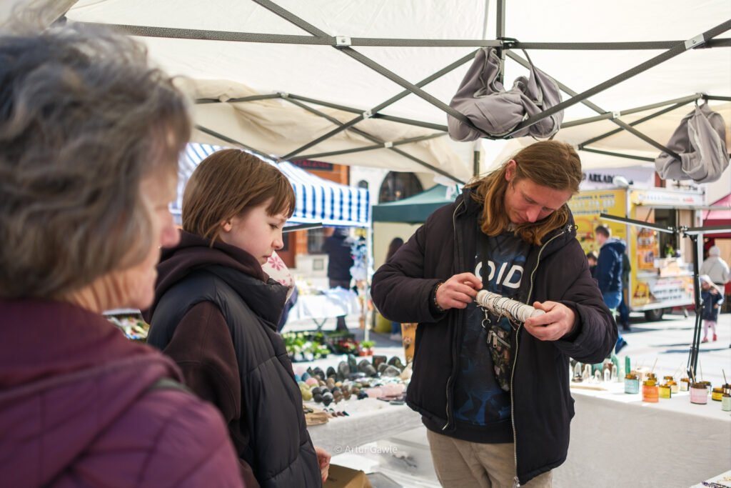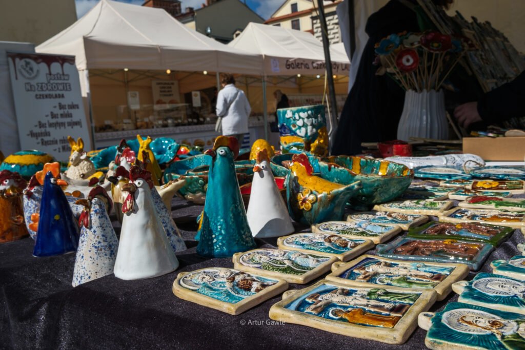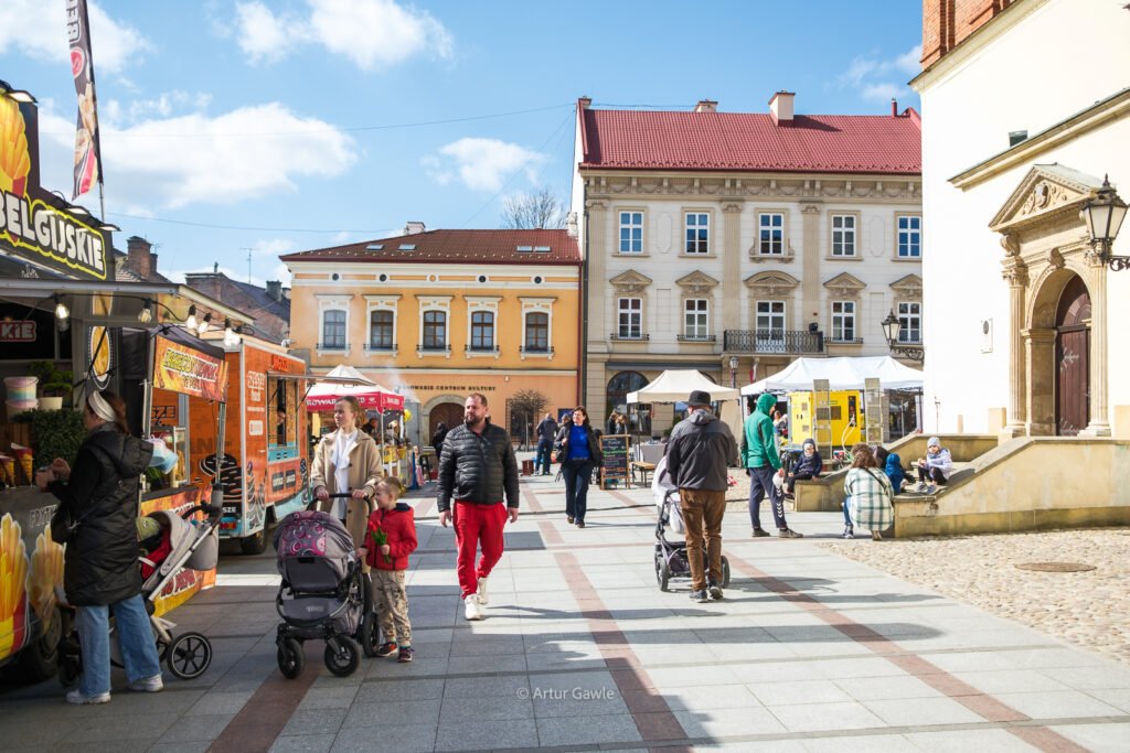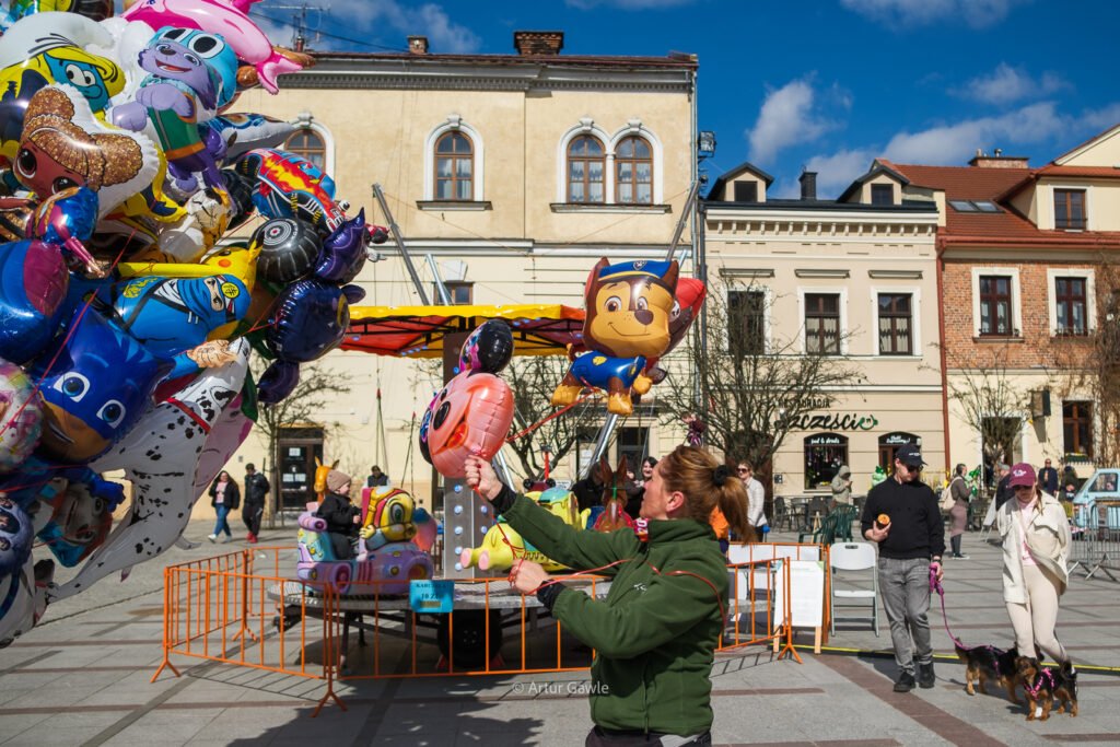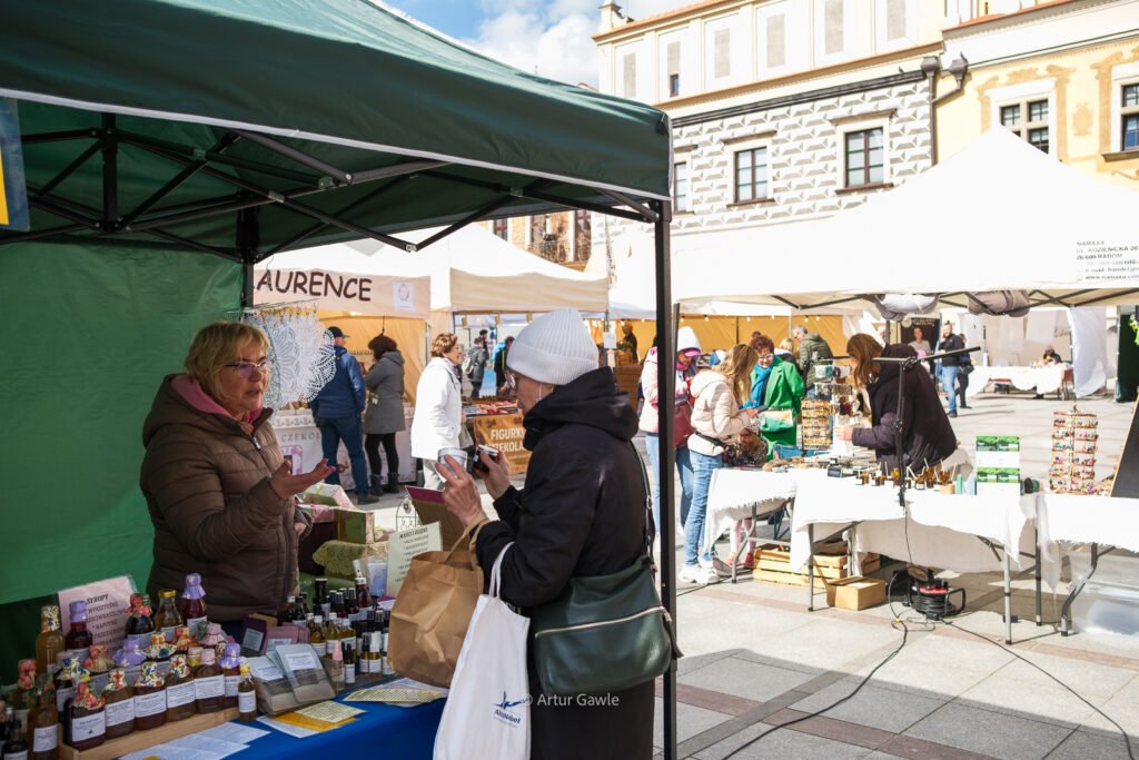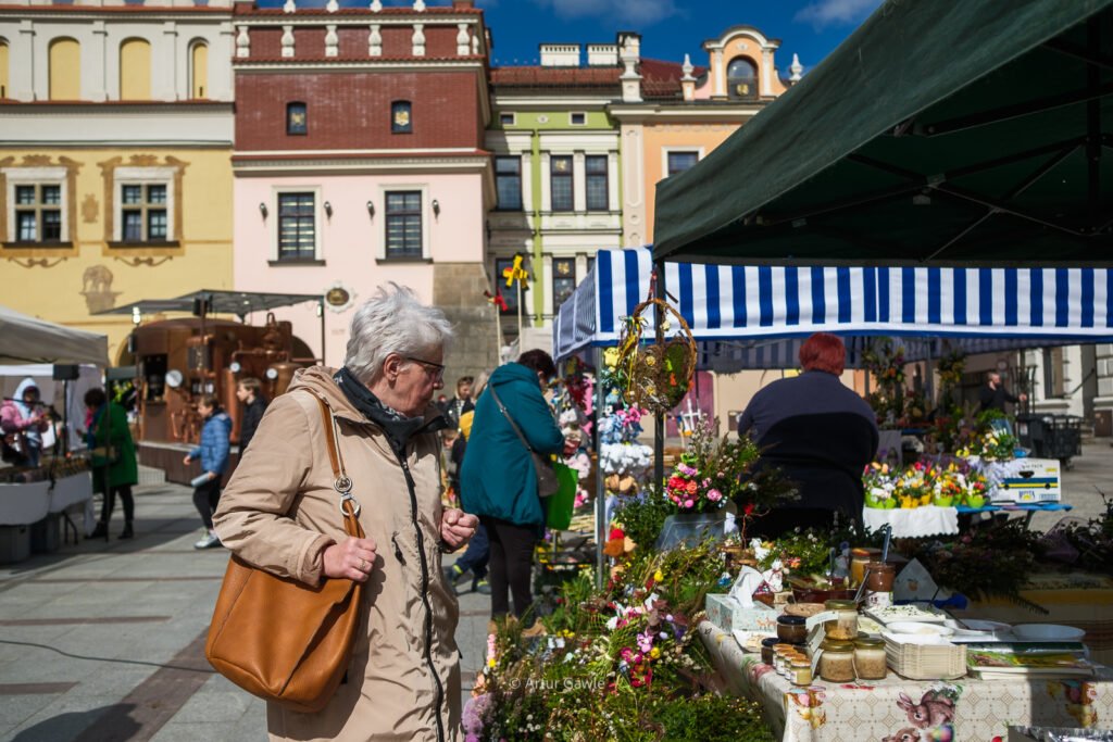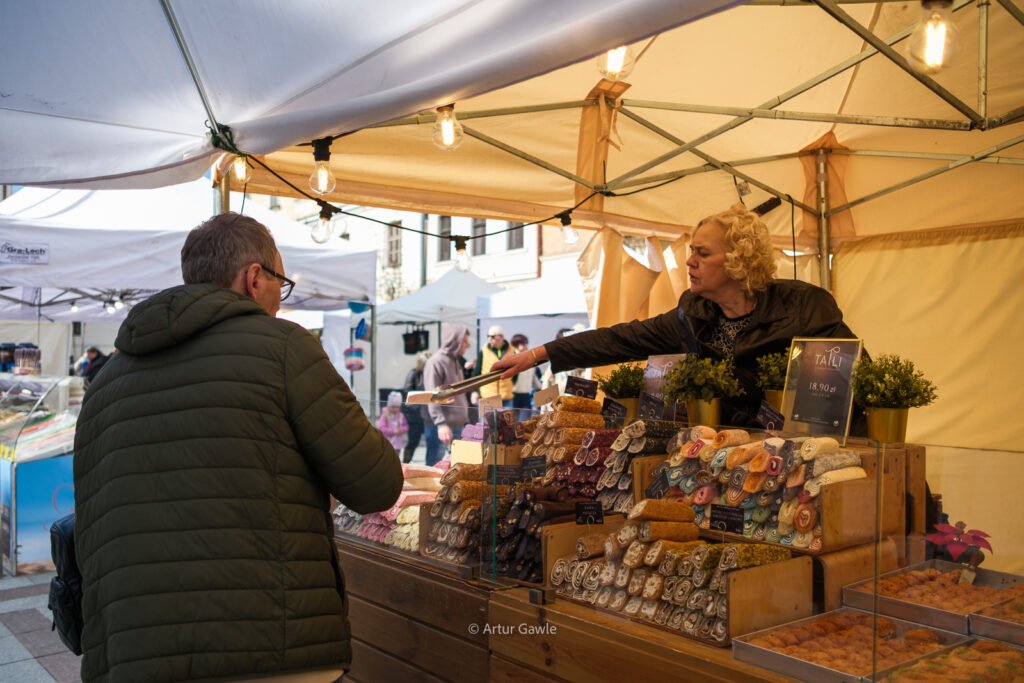 Na stoiskach znajdziesz wszystko, co kojarzy się ze świętami: swojskie kiełbasy i wędliny, oscypki, sery kozie, domowe baby, mazurki, świeże pieczywo. Są też palmy wielkanocne w różnych rozmiarach, stroiki, pisanki, koszyczki i rękodzieło. Nie brakuje food trucków – bao, tacos, langosze, koreańskie hot dogi czy inne street foody z różnych stron świata.